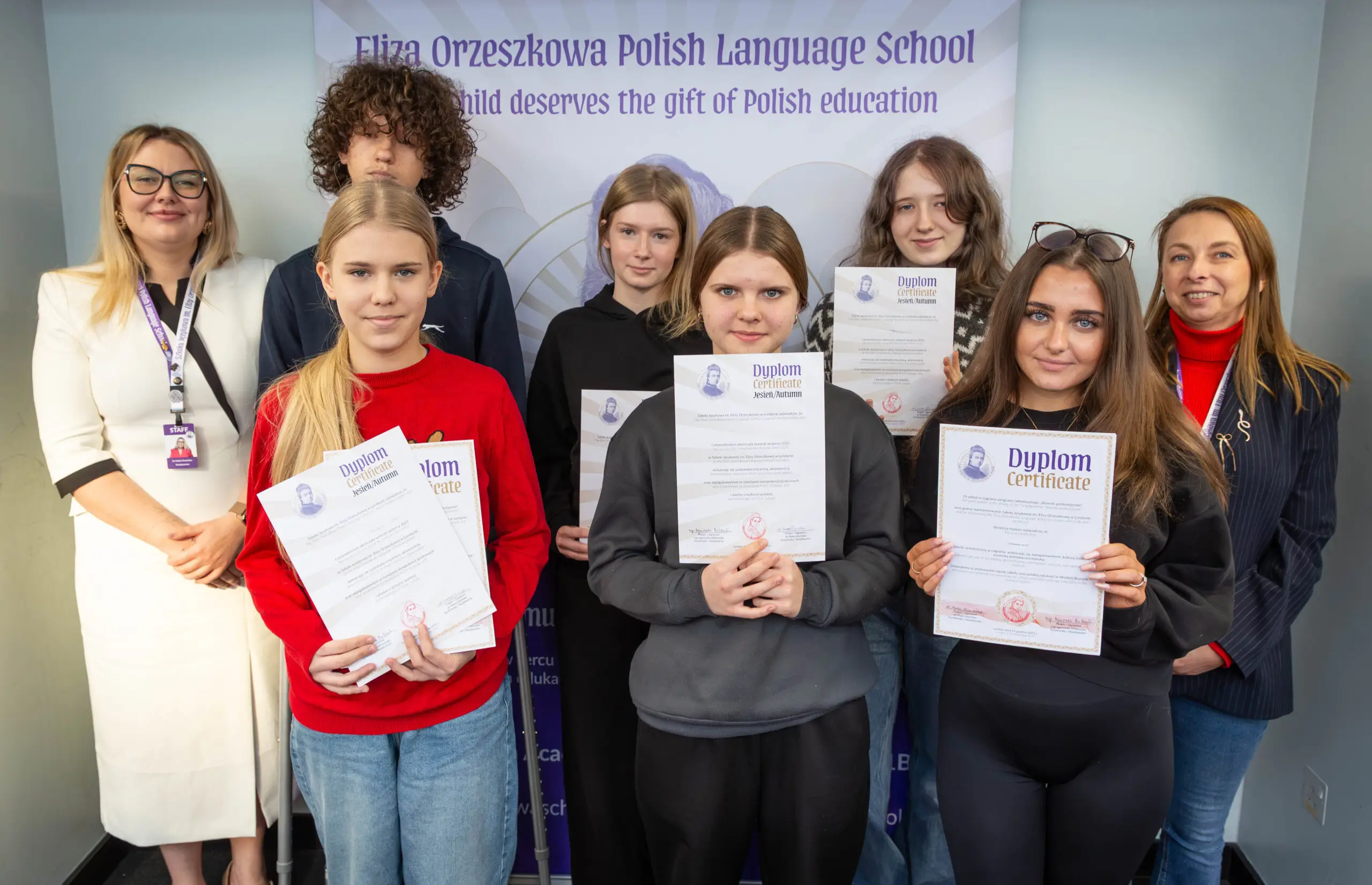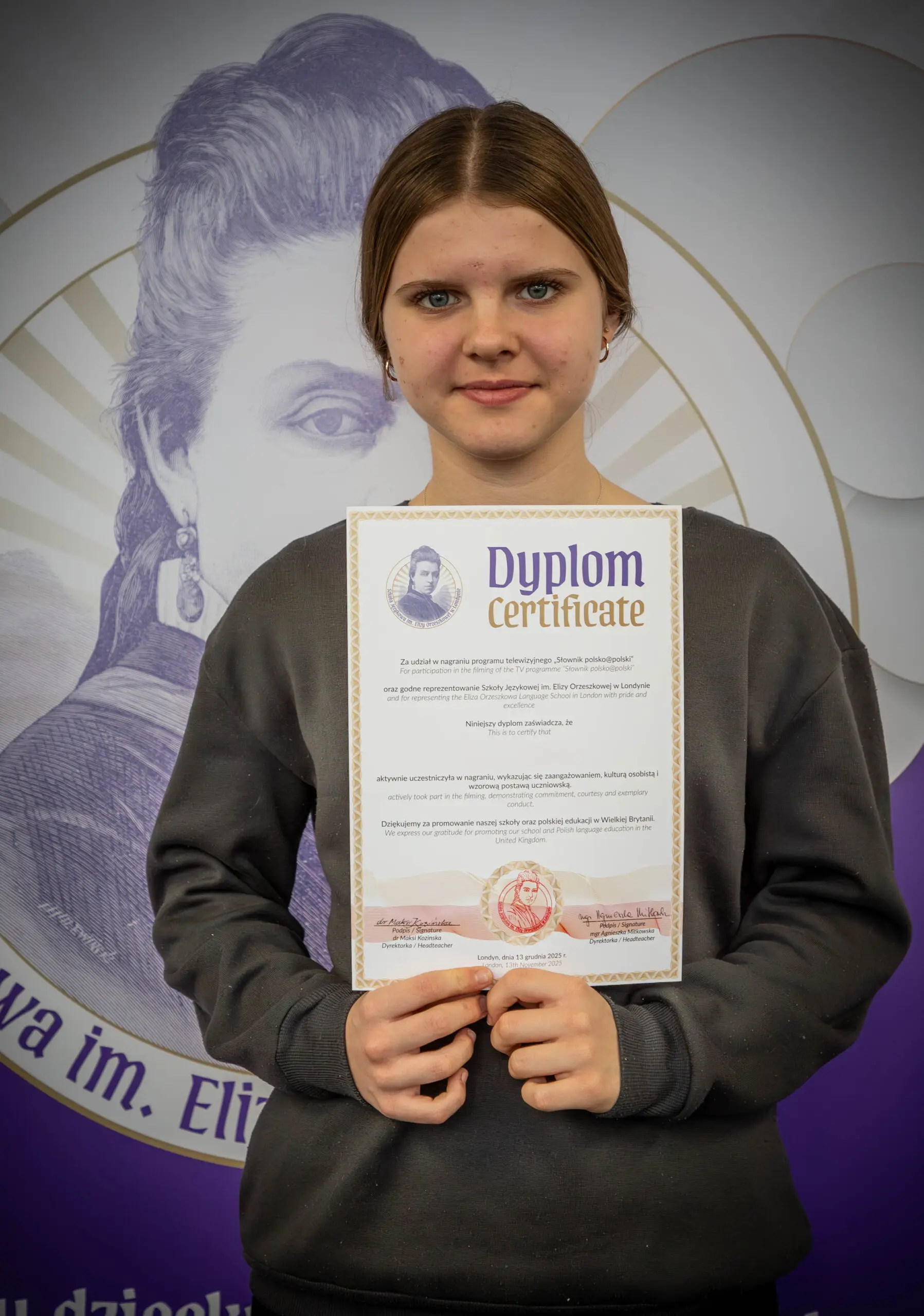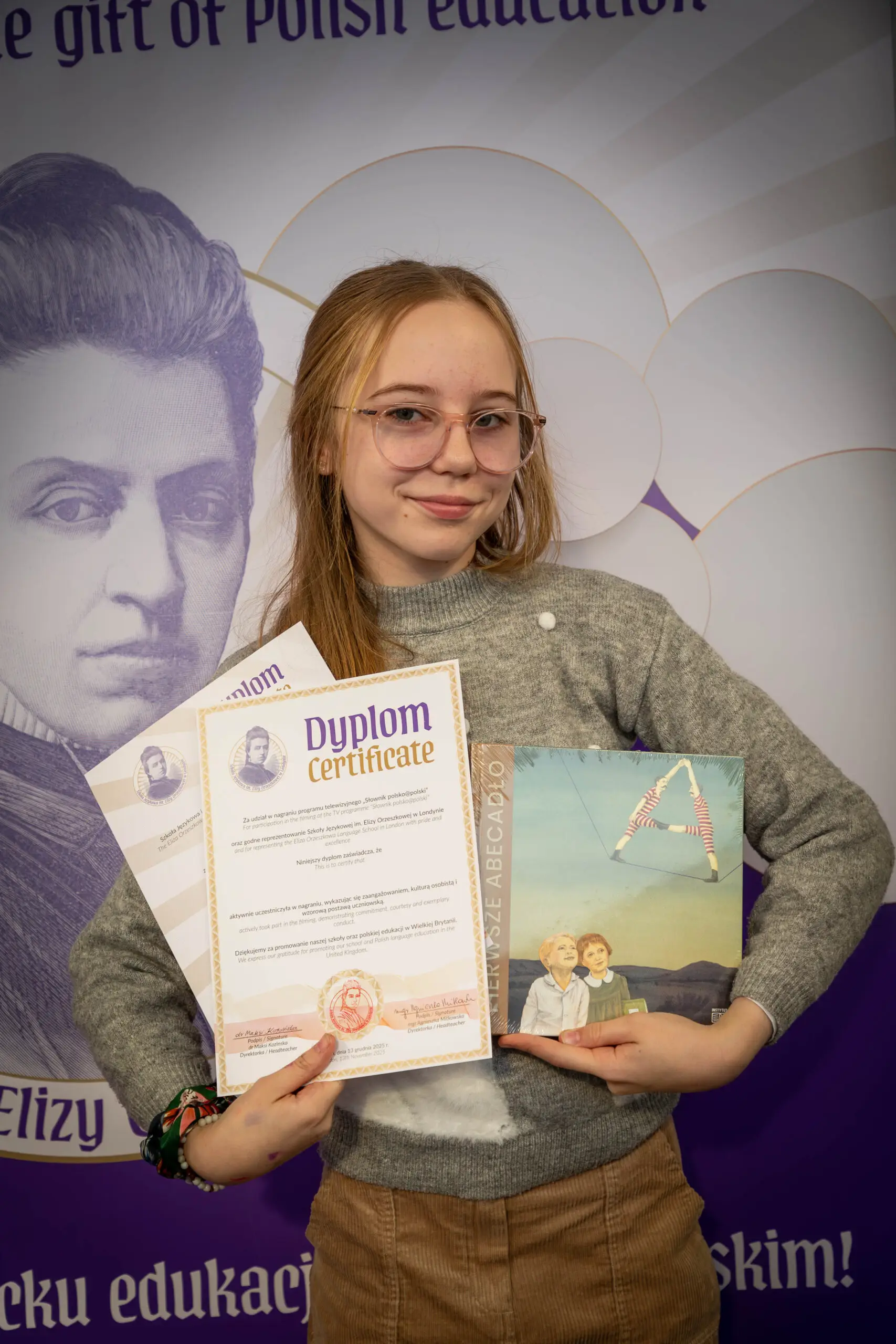 W sobotę 13 grudnia 2025 roku, w wyjątkowej, świątecznej atmosferze wspólnego kolędowania, uczniowie i uczennice naszej szkoły otrzymali dyplomy ukończenia semestru jesiennego. Tego dnia wręczone zostały również dyplomy za udział w nagraniu programu telewizyjnego Telewizji Polskiej – Słownik polsko‑polski. Było to dla nas wszystkich ogromne wyróżnienie i niezapomniane doświadczenie edukacyjne. Serdecznie gratulujemy wszystkim uczniom i uczennicom za zaangażowanie, pracę i piękne reprezentowanie naszej społeczności szkolnej